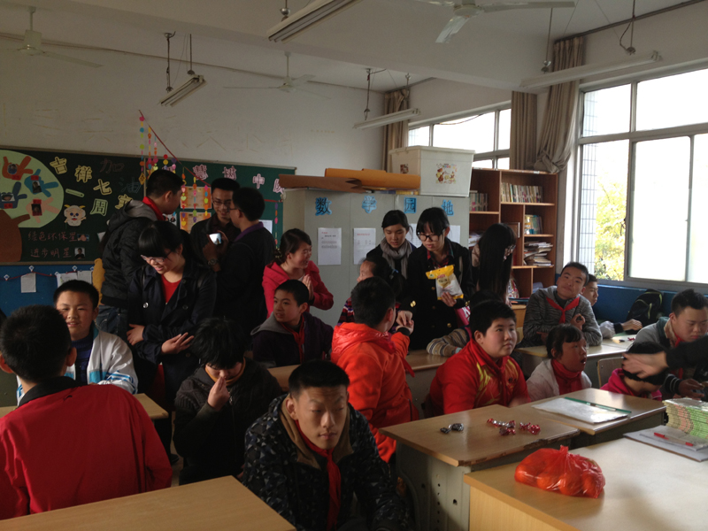 而后,志愿者们向学校的学生们表演了魔术。孩子们都表现出了极大的兴趣,一时间,欢声笑语在整个教室里洋溢。还有以为七年级的小朋友,硬是缠着志愿者想要学习魔术。而最后,在学校放学之前的一段时间,小朋友们则向我们表演了自己的节目——背古诗。不管是简单的五言、七言绝句,还是有些冗长的律诗,都赢得了掌声阵阵。虽然,他们的发音并不标准,但孩子们都很努力地想要表现到最好。