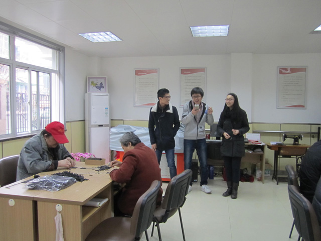 大厅里,约莫二十位花甲老人安静地做着手边的工作——电阻组装。见到志愿者们,很开心也很熟稔地打起招呼“嗨,今天给我们带来了什么节目啊?”一边招呼着大家做到老人们的身边。老人们活泼开朗、热情好客的态度很快使初初到来的志愿者们加入了畅聊和帮忙的行列。此外,志愿者们也应老人们的要求,充分发挥自己的才艺,唱歌、朗诵,无所不有。老人们还说希望下次能有话剧和小品表演……老人们也很愿意展示自己的才艺。一位年逾古稀的老奶奶是公认的才女,不仅仅为志愿者们朗诵了自己作的诗《送别》,还为大家唱起了越剧,场面和谐欢乐。