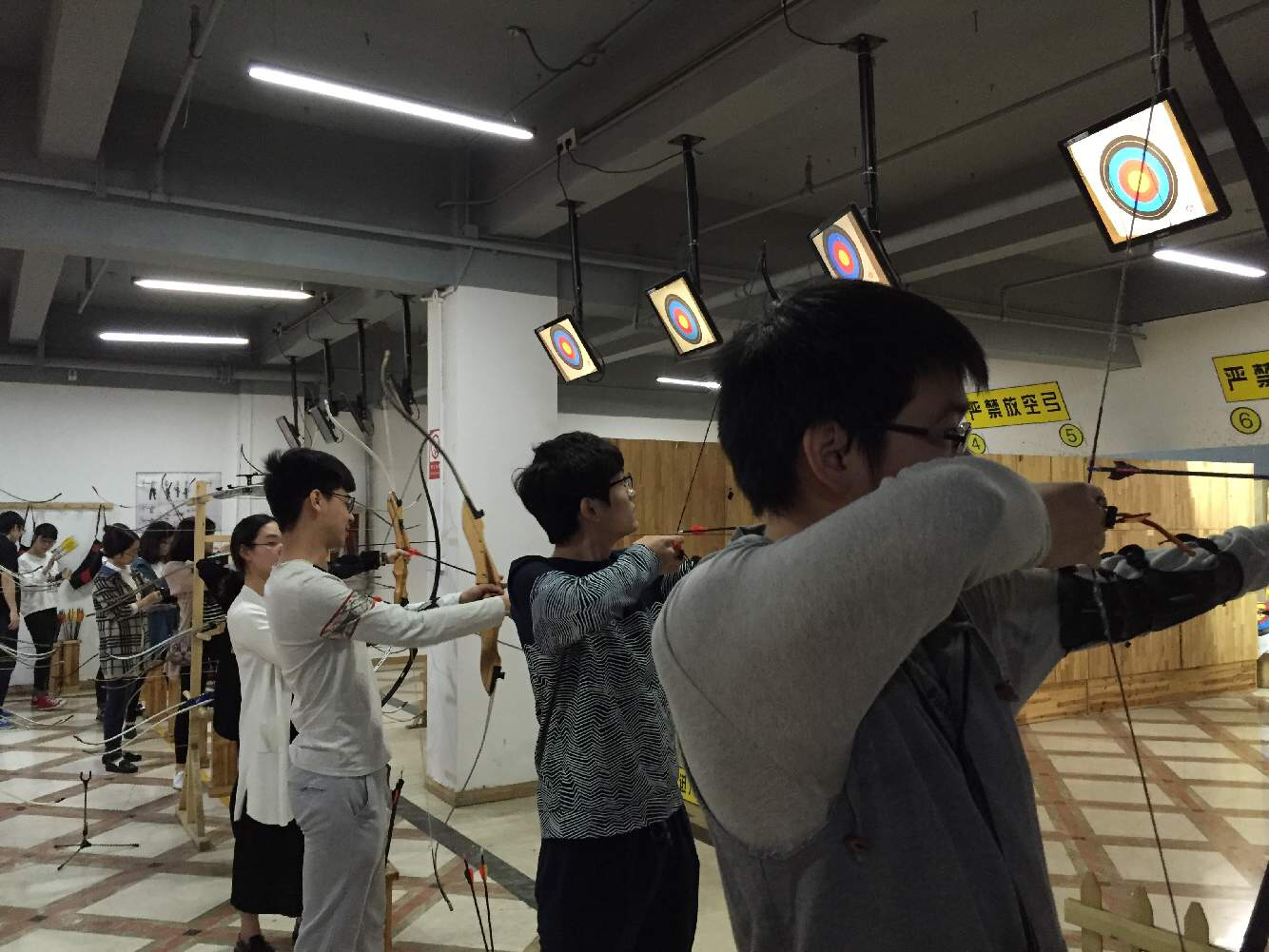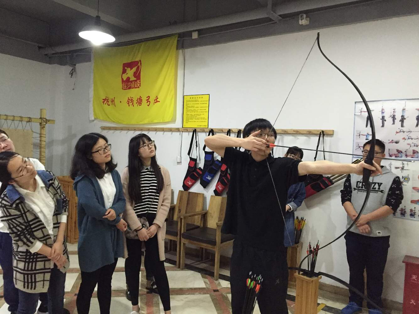 510日下午1时30分左右,为了开展传承弘扬中华优秀传统文化活动,发挥优秀传统文化怡情养志、涵育文明的重要作用,增强团员青年对中华文化的自信和认同,践行社会主义核心价值观,浙江大学临床1205团支部的同学集体来到钱塘弓社,一起学习六艺中的一项技能——“”,同时感受传统文化。钱塘弓社指导人员对我们进行了详细的培训后,同学们便依次戴好保护装备护臂护指,开始练习射箭。有的同学一上手便熟门熟路,全然不似一个新手,放佛驰骋沙场,百步穿杨;有的同学从还不是很熟练,甚至打不到靶,到多次训练后进步显著。最终许多同学都打到了十环,感受到巨大的成功的喜悦。