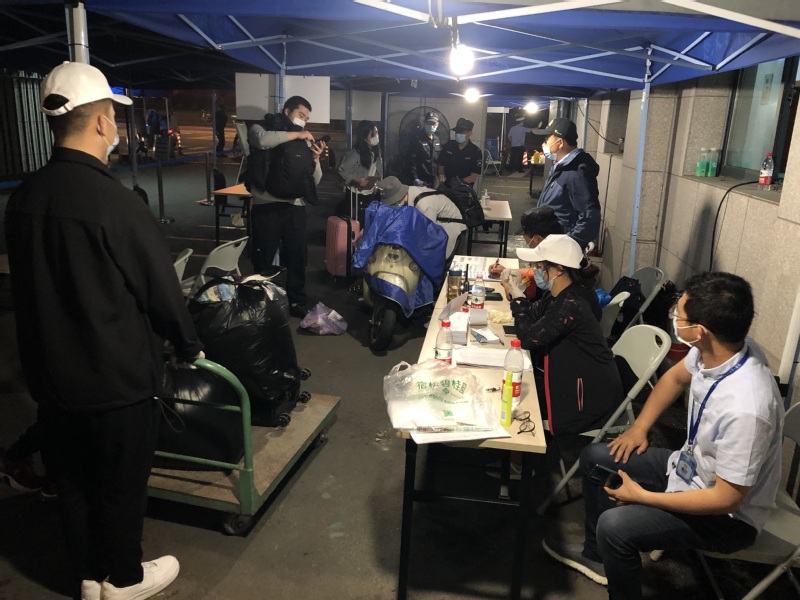 由于部分同学不得不在深夜到校,志愿者们的工作也持续到深夜十点结束。最后几个小时人流密度往往很低,但灯光下,辅导员、志愿者和保安们依然在帐篷里守候着,确认今日返校名单与到校情况,做最后的收尾工作。