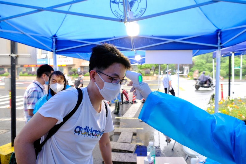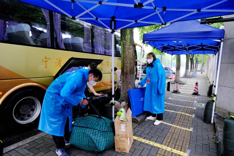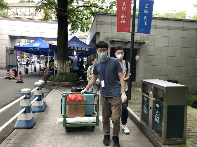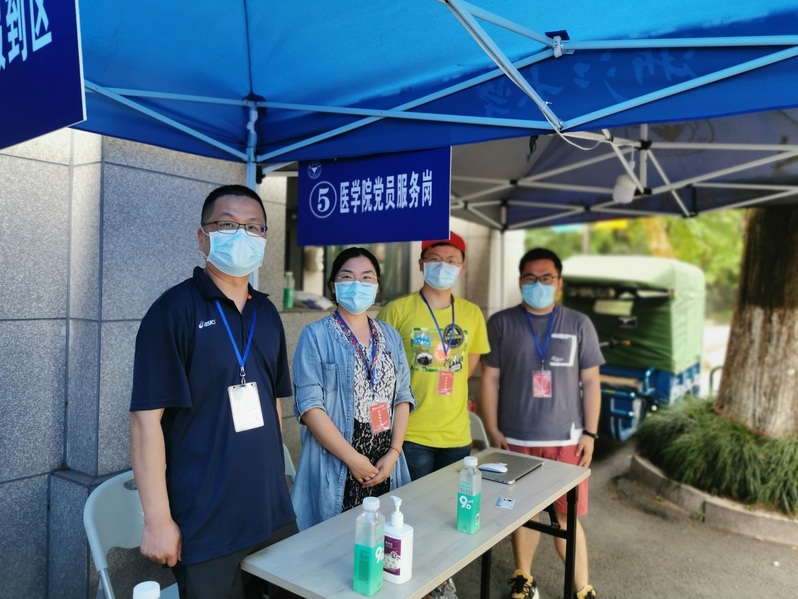 华家池畔,医学院60余名党员志愿者日夜接力,迎接2753名医学生顺利返校