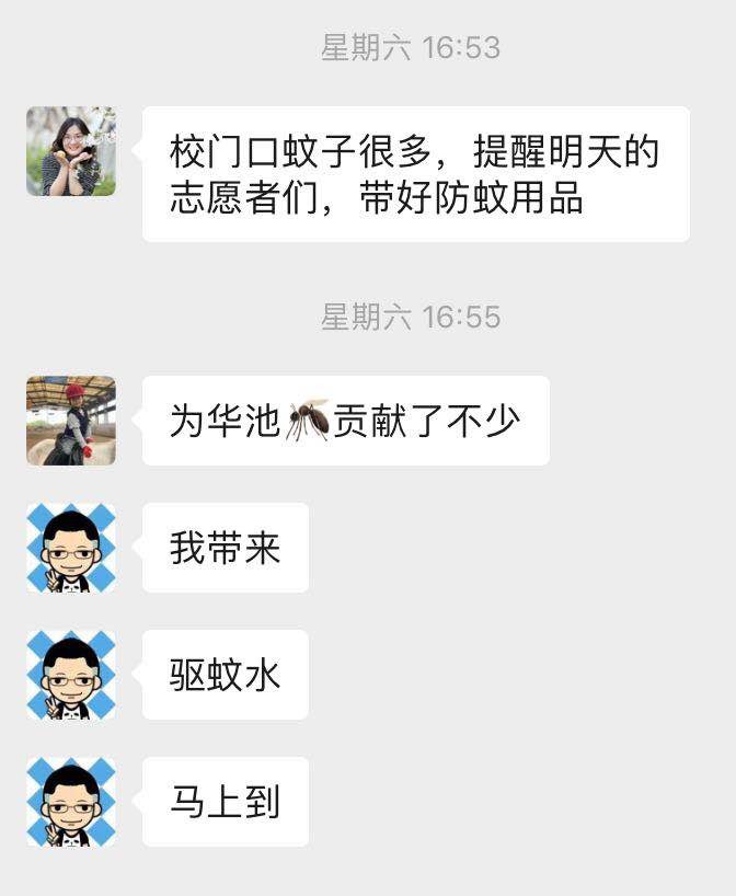 “校门口蚊子很多,明天的志愿者们记得带好防蚊用品”“我带来驱蚊水,马上到!”这是返校志愿者工作群内的一段对话,互帮互助站好每一班岗是他们的日常。