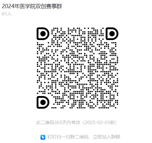 3.培训平台:线上钉钉会议,请医学院相关师生扫码加入。后续相关工作通知会集中在该群发布,并为参赛团队师生答疑。