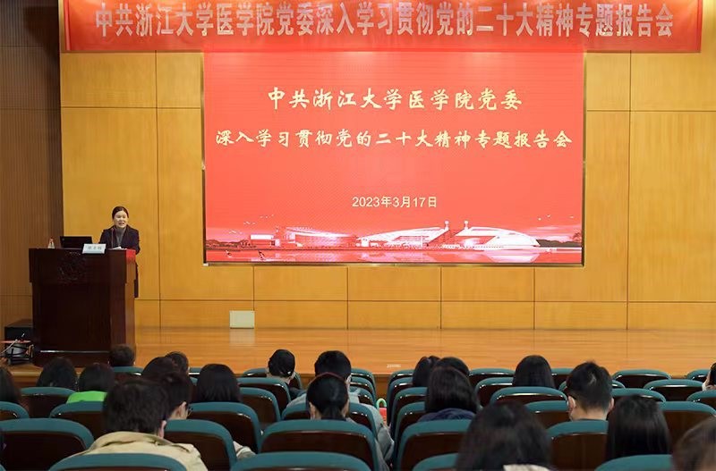 为深入学习贯彻习近平新时代中国特色社会主义思想和党的二十大精神,更加紧密地团结在以习近平同志为核心的党中央周围, 刻领会中国式现代化赋予高水平大学的使命和责任,2023317日上午,医学院党委举办深入学习贯彻党的二十大精神专题报告会,学习贯彻党的二十大精神浙江大学宣讲团成员、马克思主义学院副教授张立程作题为《以中国式现代化推进中华民族伟大复兴——学习贯彻党的二十大精神》的报告。报告会由医学院党委副书记陈周闻主持,学院全体党支部书记、支部委员、党员师生代表180余人现场参会,600余名党员线上收看。