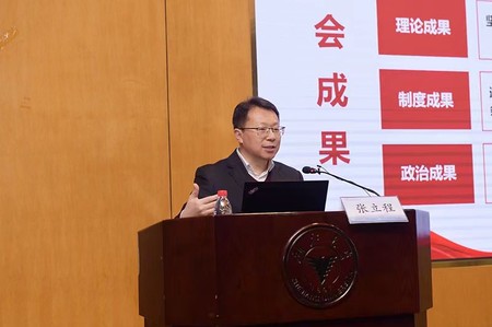 党的二十大擘画了全面建设社会主义现代化国家、以中国式现代化全面推进中华民族伟大复兴的宏伟蓝图,科学谋划了未来一个时期党和国家事业发展的目标任务和大政方针,吹响了奋进新征程的时代号角。习近平总书记强调:“概括提出并深入阐述中国式现代化理论,是党的二十大的一个重大理论创新,是科学社会主义的最新重大成果。”牢牢把握新时代新征程党的使命任务,必须深刻理解和把握中国式现代化的历史逻辑、创新突破、中国特色、本质要求和深远影响。报告会上,张立程同志从党的二十大取得的丰硕实践成果、理论成果、制度成果、政治成果引入,系统阐述了党的二十大报告的五大特点和学习贯彻的总体要求,从“五大特征、九个本质要求、两步走、五个原则”全面解读了中国式现代化的丰富内涵要义。他强调,中国一流大学群体承载着服务中国式现代化的战略使命,必须增强战略自信,发挥历史主动,积极为服务中国式现代化贡献浙大力量,努力把学校打造成党的全面领导的坚强阵地。